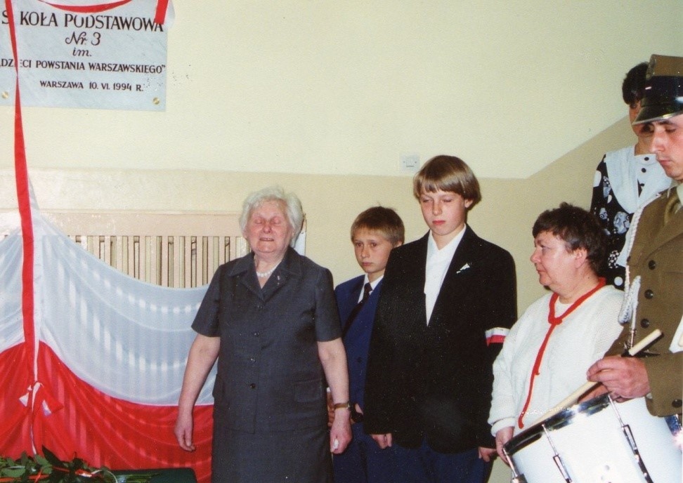 / śp.Jadwiga Podrygałło- Matka Chrzestna Sztandaru oraz ówczesna dyrektorka szkoły/